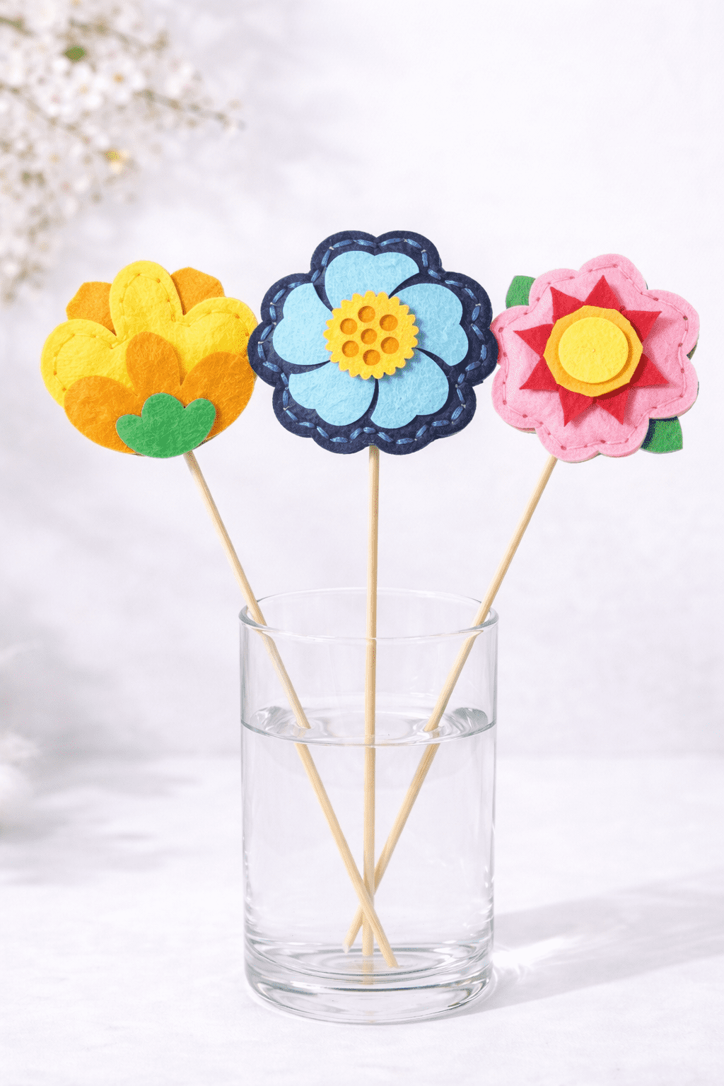 ✔ Créer un bouquet de fleurs en feutrine grâce aux bâtons en bois inclus