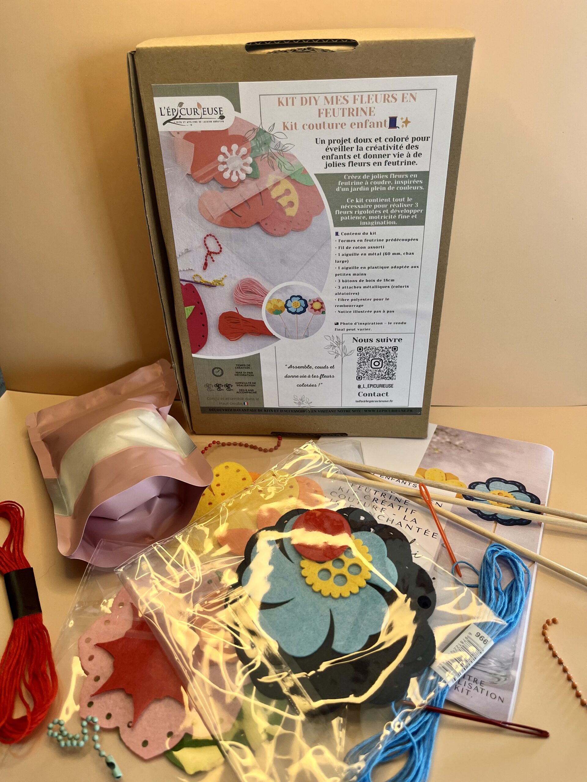 🌼 Kit DIY Fleurs en feutrine – La Prairie Enchantée – Kit créatif couture enfant